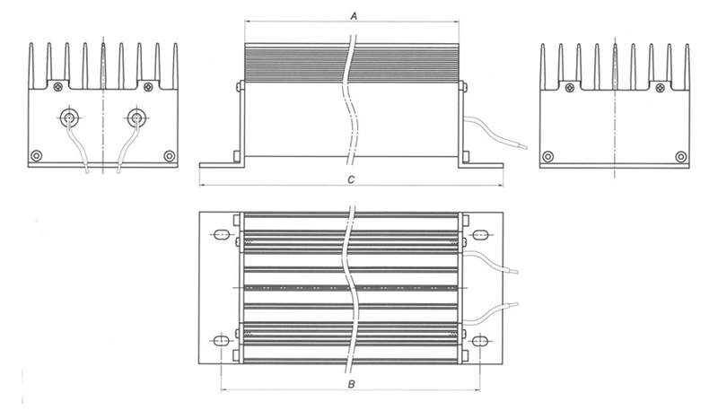 La forma costruttiva consente di ottenere elevate potenze, permette la massima dissipazione agli elementi resistivi e quindi è in grado di assorbire e dissipare grande energia per impulsi.